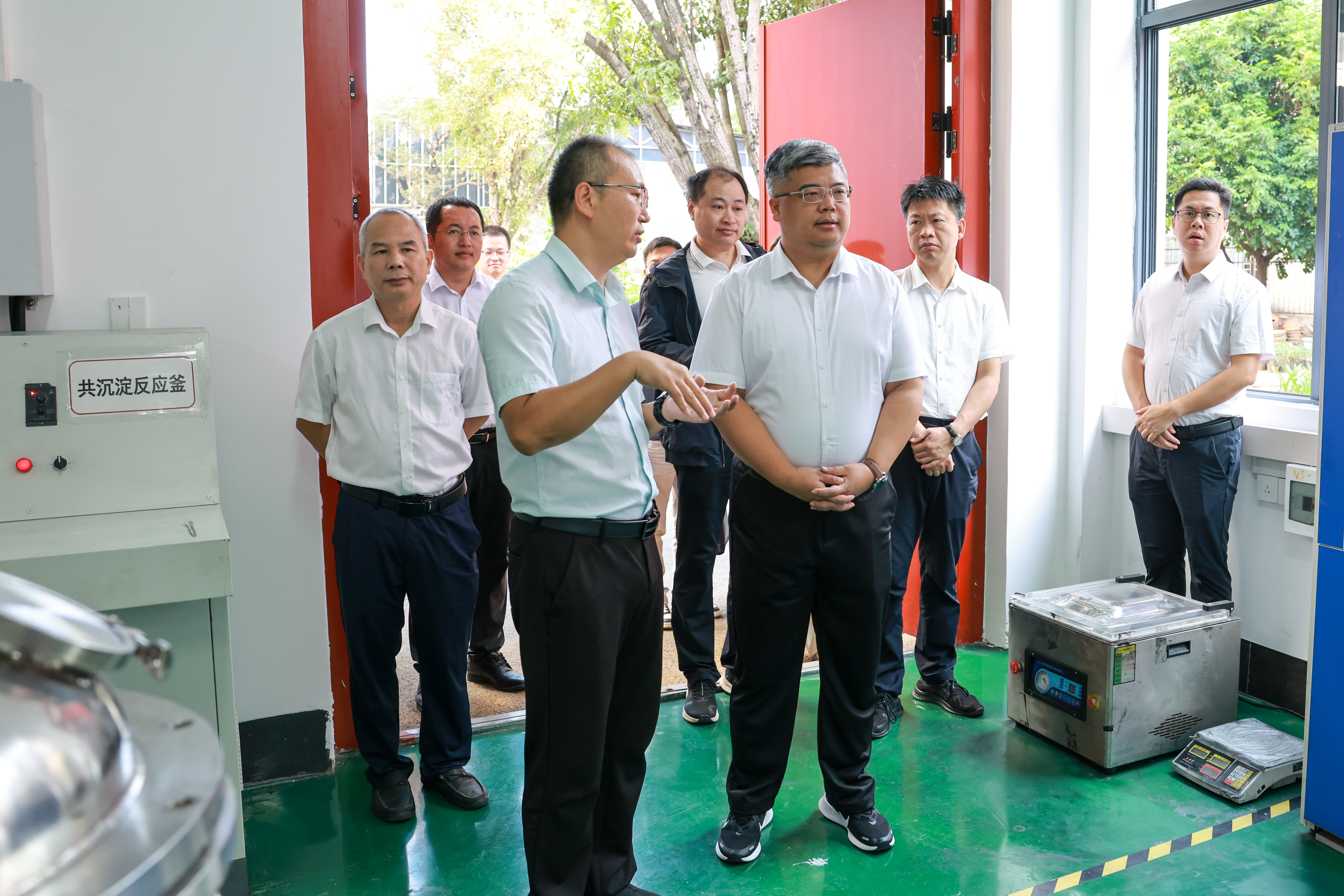 会前,王文泽一行实地考察了广西电化学能源材料与器件科技成果转化中试研究基地、广西类脑计算与智能芯片重点实验室、药用资源化学与药物分子工程教育部重点实验室、教育区块链与智能技术教育部重点实验室。