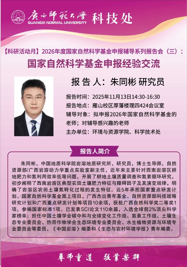 【科研活动月——2026国家自科基金申报辅导报告预告】:国家自然科学基金申报经验交流