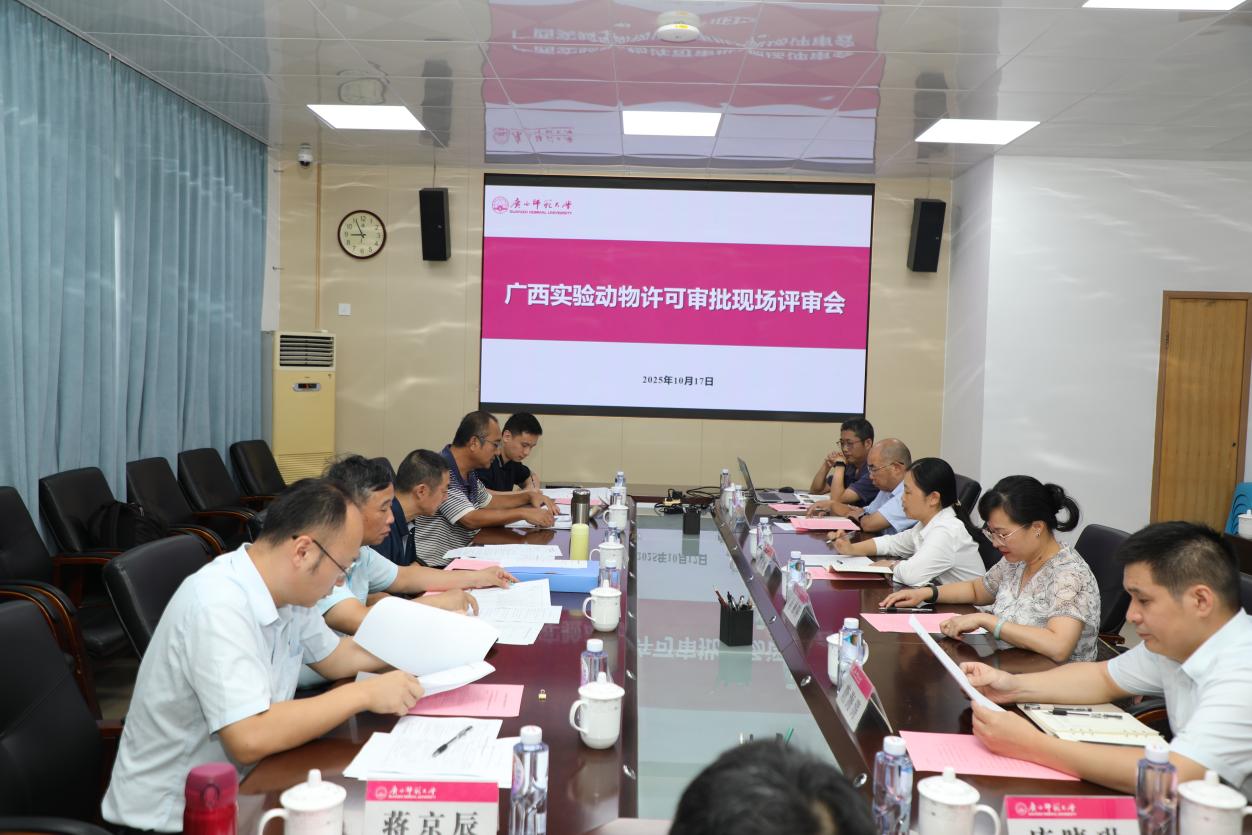 近日,广西实验动物管委会办公室组织评审专家组对我校实验动物中心实验动物使用许可进行了现场核验评审。评审专家组由自治区疾控中心、职业病防治研究院、灵康赛诺科生物科技有限公司及实验动物管委会办公室的五位资深专家组成。校党委常委、副校长沈星灿,科学技术处,化学与药学学院及实验动物中心相关负责人参与评审会。