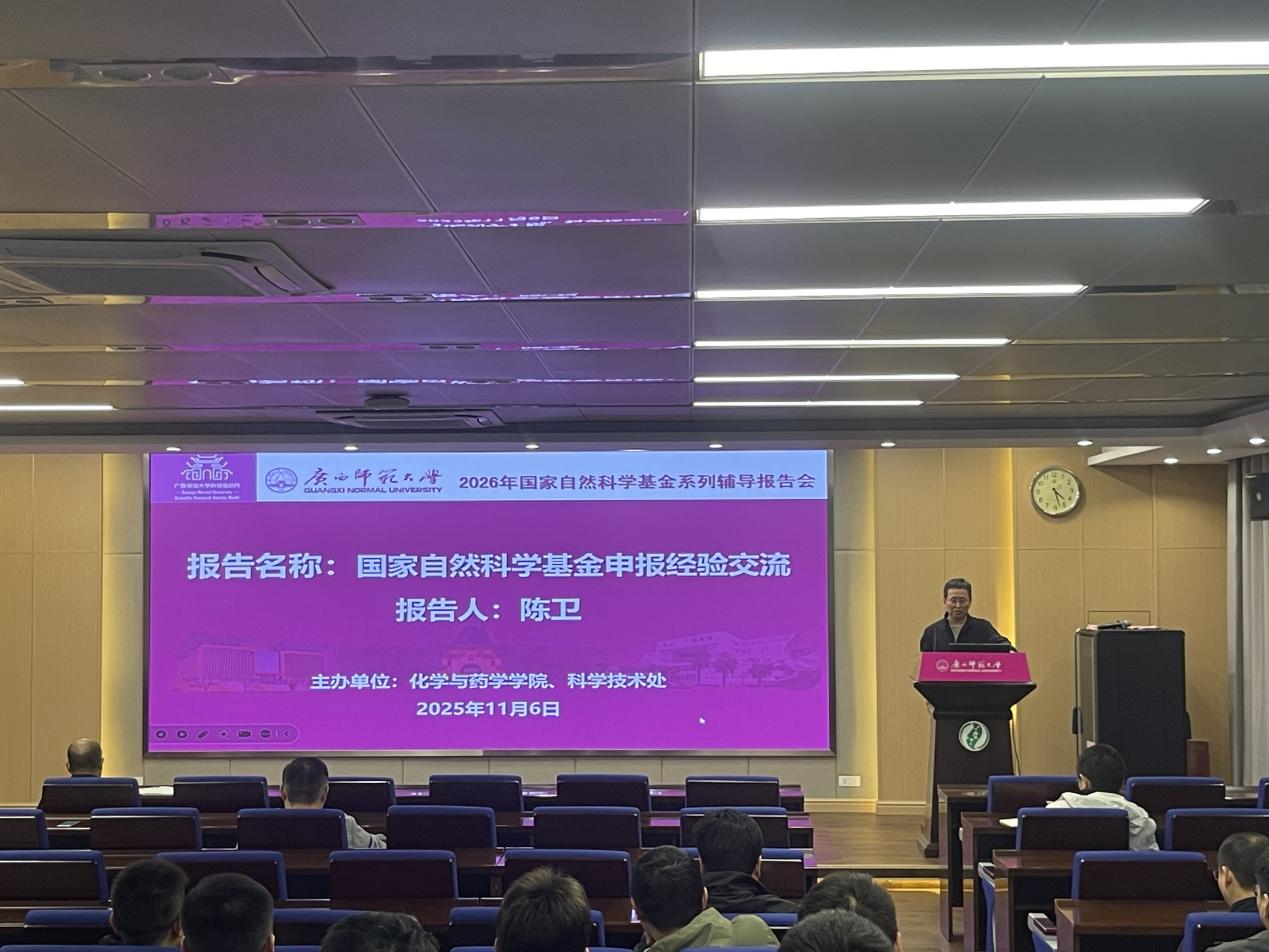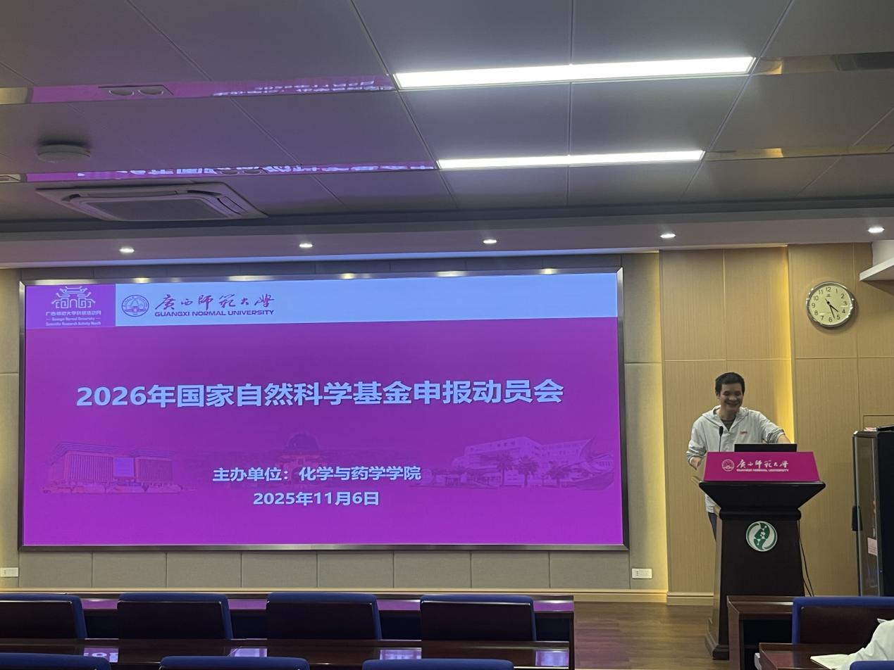 为扎实推进2026年度国家自然科学基金项目申报工作,全面提升申报质量,凝聚科研创新合力,2025年11月6日下午,化学与药学学院在育才校区重点实验室1号楼310多功能报告厅召开2026年度国家自然科学基金申报动员暨辅导大会。学院党政主要负责人、相关领导和学院全体教师参加会议,会议由分管科研工作的副院长主持。