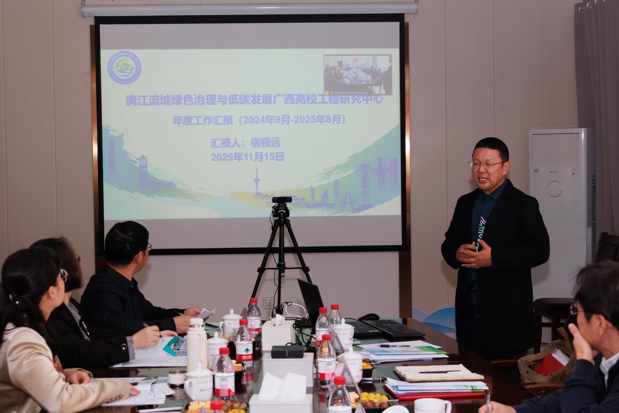 2025年11月15日上午,漓江流域绿色治理与低碳发展广西高校工程研究中心(以下称中心)2025年度技术委员会会议在我校举行。中心技术委员会主任中山大学孟凡刚教授,技术委员会委员广西国宏智鸿环保科技集团有限公司副总经理邹清川、中国有色桂林矿产地质研究院有限公司谢廷勇教授级高级工程师,学校科学技术处、学校创新创业学院相关领导,环境与资源学院主要领导及工程研究中心骨干成员参加本次会议。