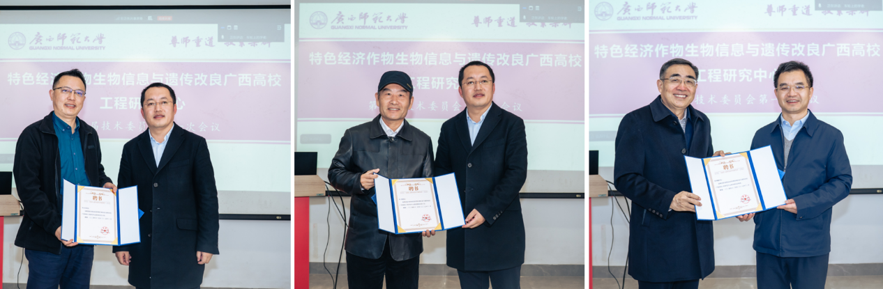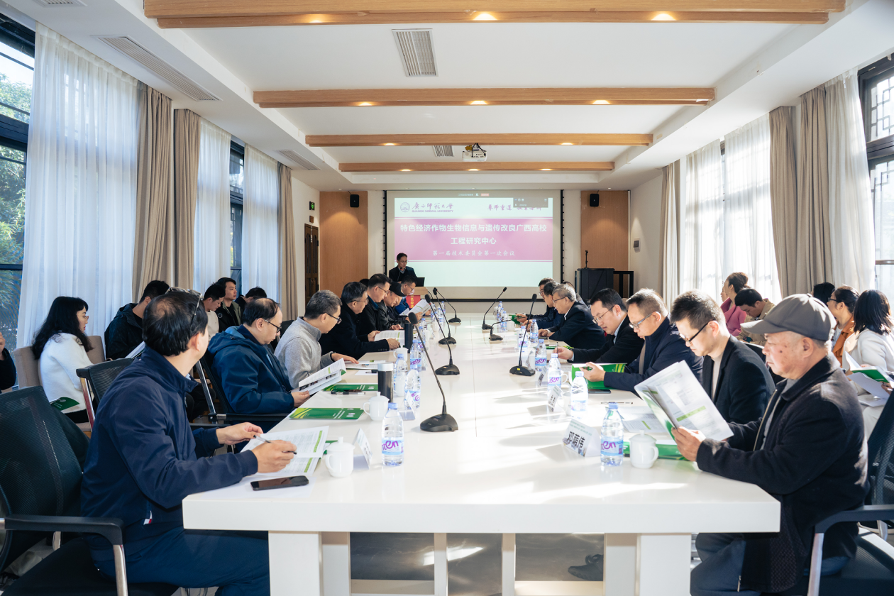 2025年11月22日,“特色经济作物生物信息与遗传改良广西高校工程研究中心”(以下简称“中心”)第一届技术委员会第一次会议在桂林市雁山区召开。工程研究中心第一届技术委员会全体委员、科技处负责同志、生命科学学院领导及中心骨干研究人员参加会议。校党委常委、副校长宋树祥出席会议并致辞。