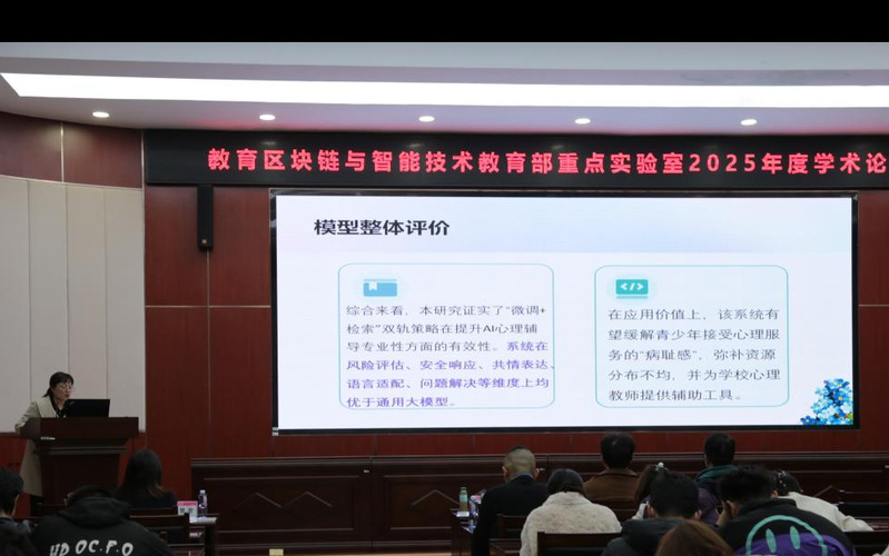 在学术报告环节,三位校内学者围绕“智能技术与教育应用”这一主题,分享了最新研究成果与实践探索。教育学部权方英副教授以《基于大语言模型微调的青少年心理辅导模型及效果评价》为题,系统介绍了如何利用大语言模型技术构建个性化、可交互的心理辅导系统。计算机科学与工程学院/软件学院/人工智能学院傅星珵老师作了题为《基于黎曼几何的图基础模型研究》的报告,深入探讨了黎曼几何在图表示学习中的基础作用,以及在教育知识图谱构建与个性化学习路径推荐中的应用潜力。计算机科学与工程学院/软件学院/人工智能学院陆广泉教授围绕《图相似性计算问题研究》,系统阐述了图相似性计算的前沿方法及其在教育资源匹配、学术网络分析等领域的重要价值。