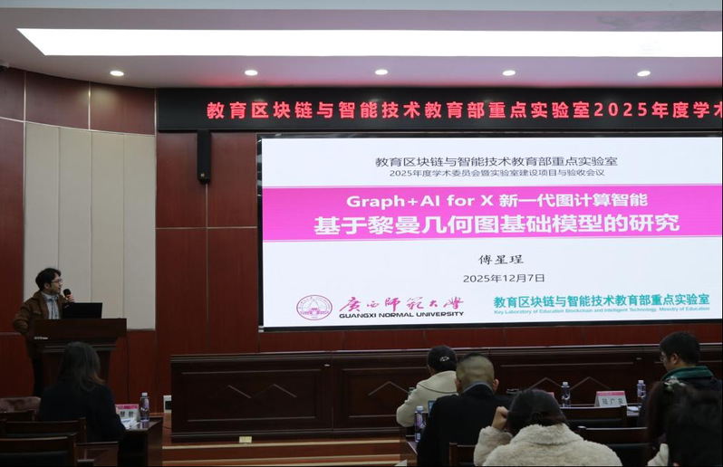 12月7日,教育区块链与智能技术教育部重点实验室2025年度学术论坛在广西师范大学育才校区举行。实验室特邀专家、计算机科学与工程学院/软件学院/人工智能学院领导班子出席论坛,师生代表近百人参加会议,共同探讨区块链、人工智能与教育融合发展的前沿趋势与创新实践。