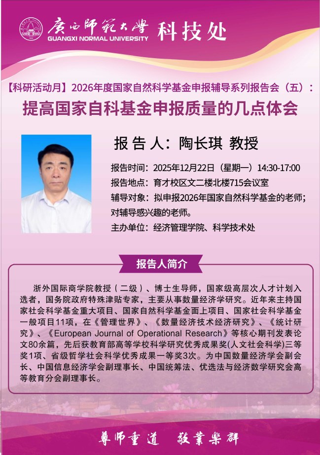 【科研活动月——2026国家自科基金申报辅导报告预告】:提高国家自科基金申报质量的几点体会