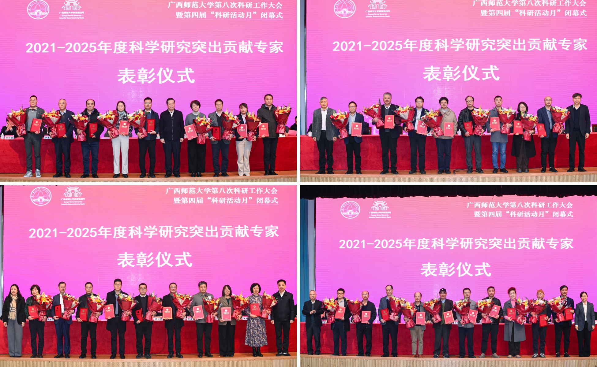 校领导分别为科学研究突出贡献专家代表颁发获奖证书、赠送鲜花