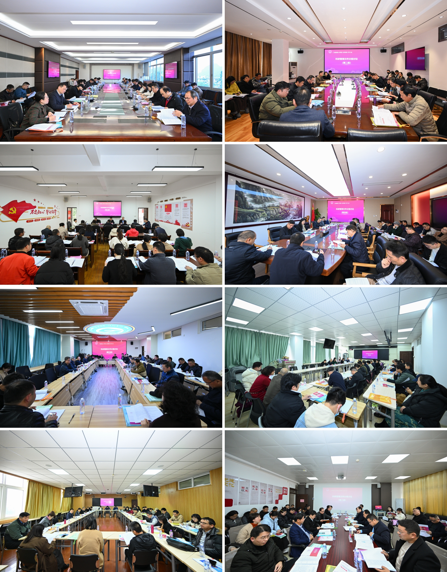 社科处主要负责人对学校拟修订出台的科研分类评价管理办法进行解读说明。同时,大会组织8个讨论小组对大会报告和科研分类评价管理办法进行讨论。各讨论小组充分肯定大会报告精神,并对文件的修订提出富有建设性的意见和建议。